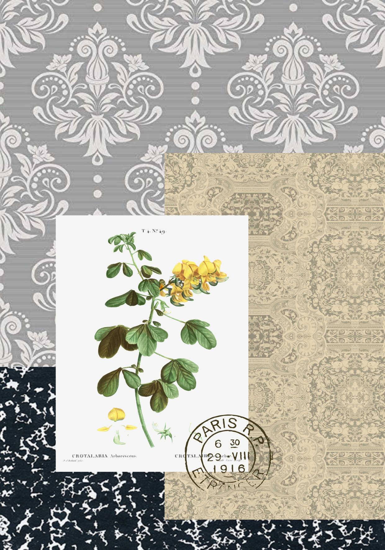 - Variedad de diseños: Composiciones florales y collages con fondos vintage texturados.