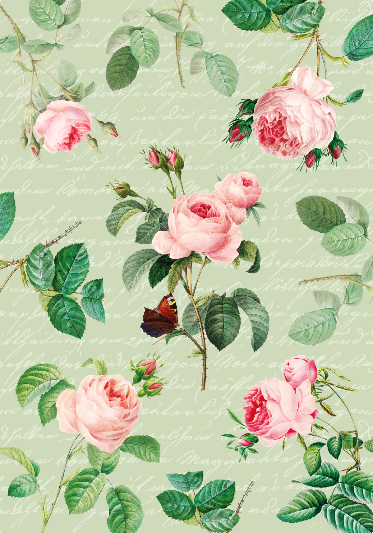 - Una lámina con un texto especial entre hojas de rosas: Una de las láminas incluye un texto en un tono claro que contrasta re bien con un fondo verde clarito, ¡y todo rodeado de hojas de rosas formando un patrón delicado y original!