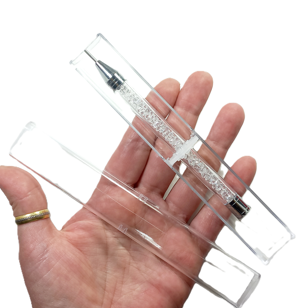 Con su práctico diseño tipo lapicera, que entra perfectamente en cualquier cartuchera, este LevantaStrass es tu aliado ideal. Cuenta con dos extremos: