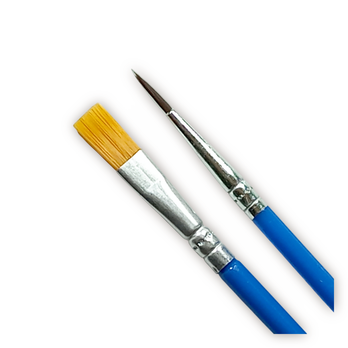 El set está compuesto por un pincel chato y un pincel redondo fino.