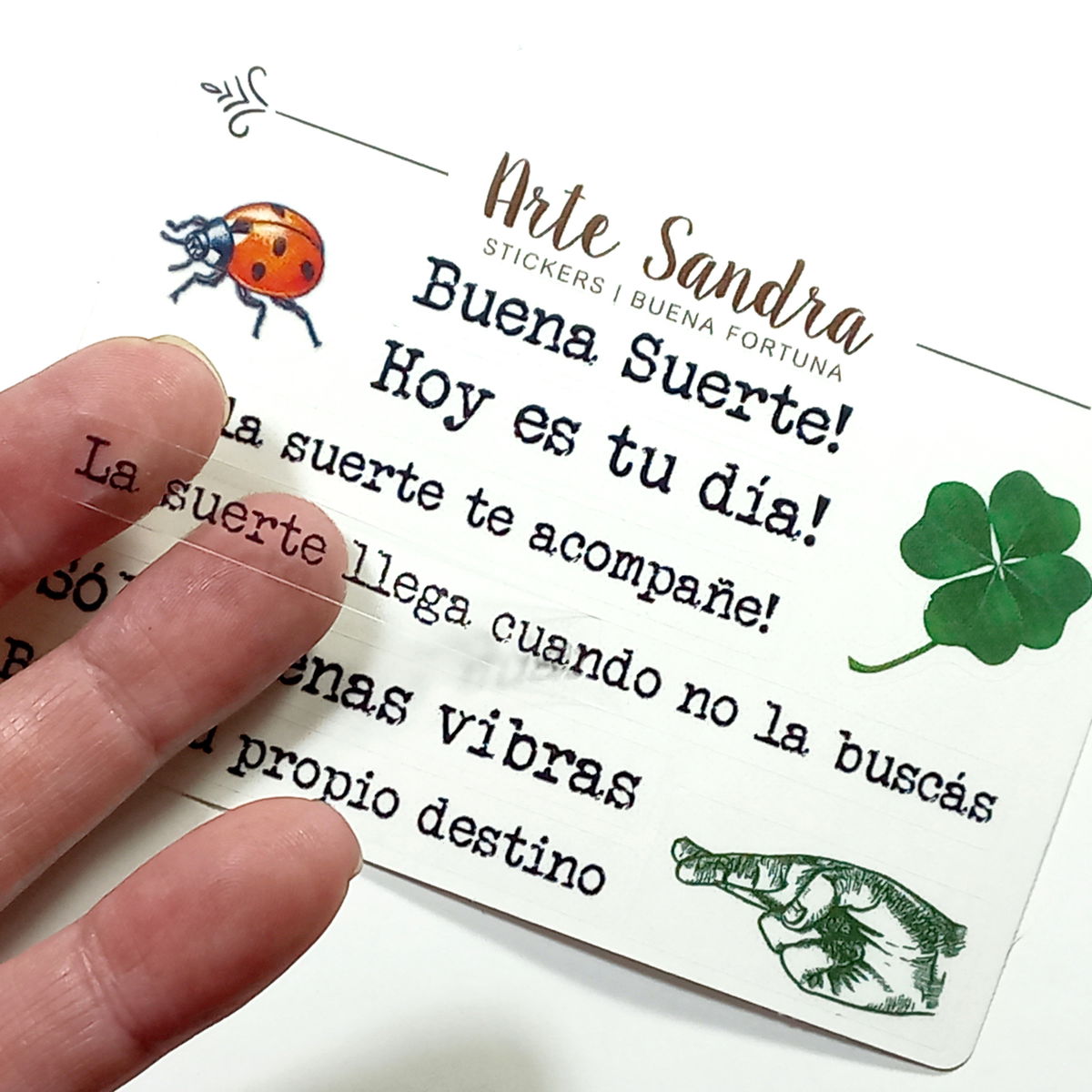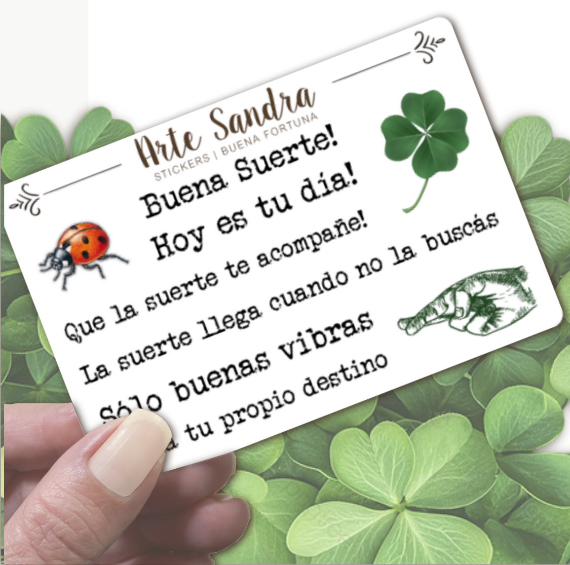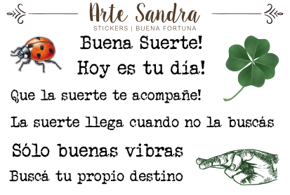 Nuestra plancha de Stickers "Buena Fortuna" de diseño exclusivo de ArteSandra es el amuleto perfecto para llenar tus journals, planners, tarjetas, regalos y proyectos de scrapbooking con vibras de buena suerte y optimismo.