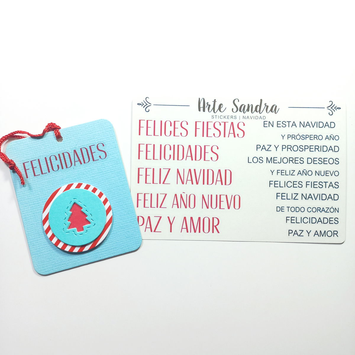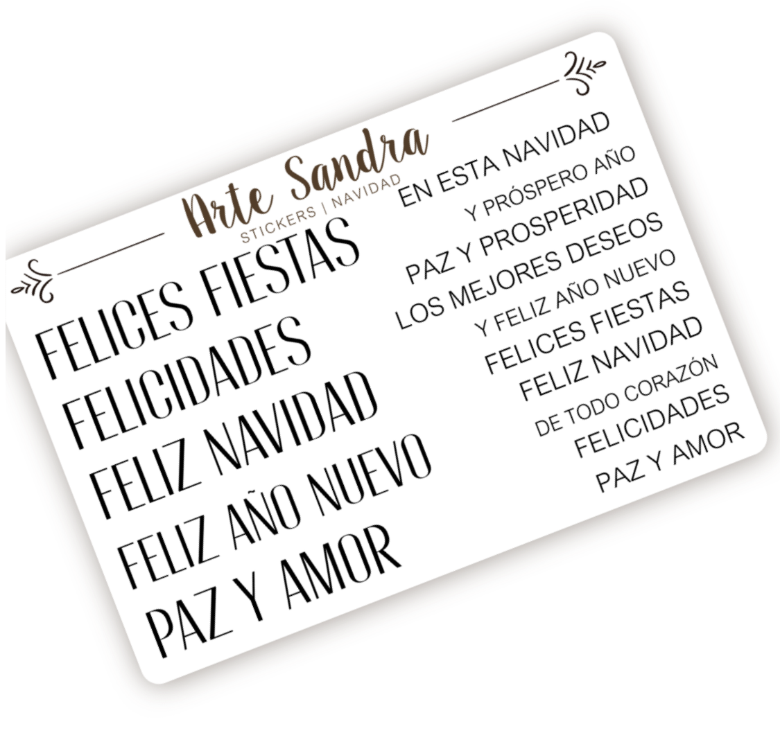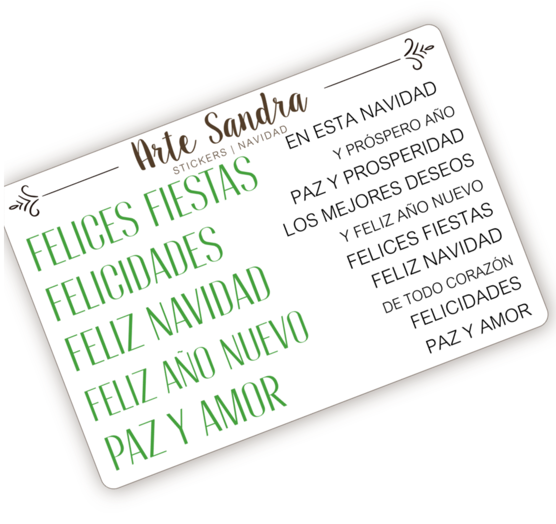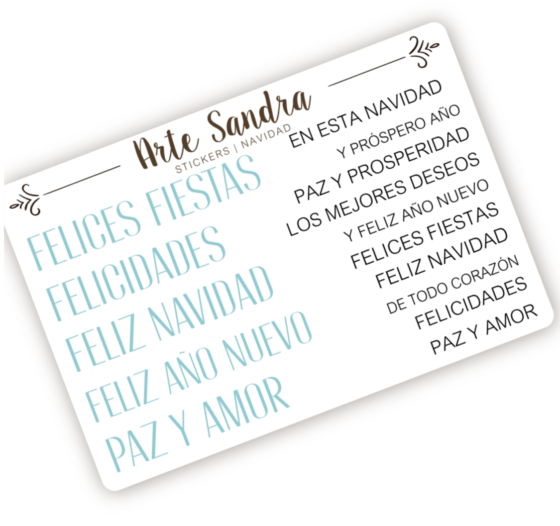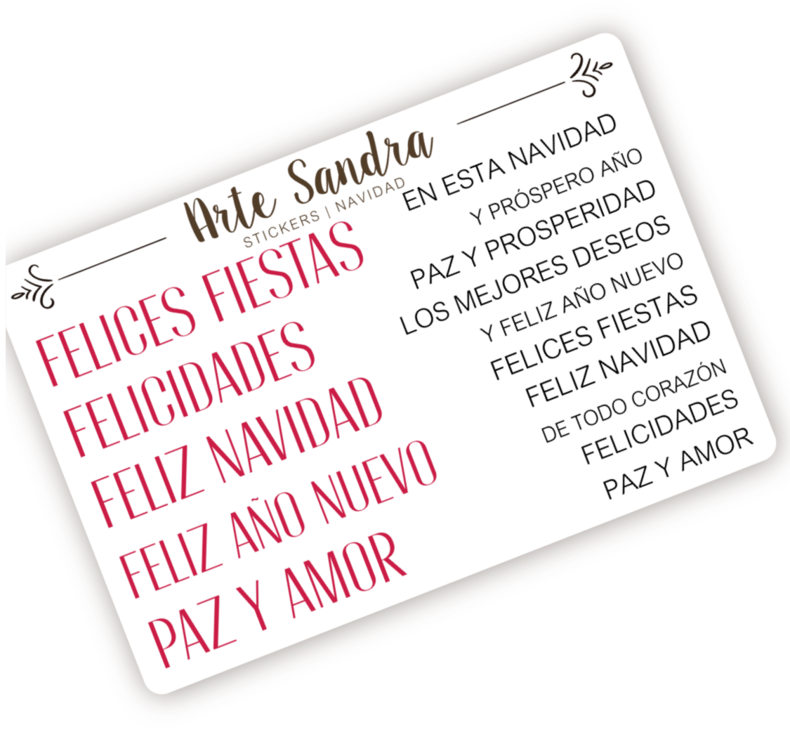 Nuestra plancha de Stickers "Navidad" de diseño exclusivo de ArteSandra es el toque perfecto para darle un espíritu festivo y personalizado a tus tarjetas, regalos, journals y proyectos de scrapbooking.