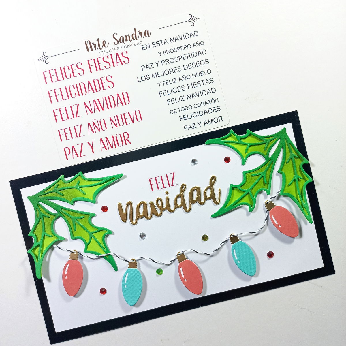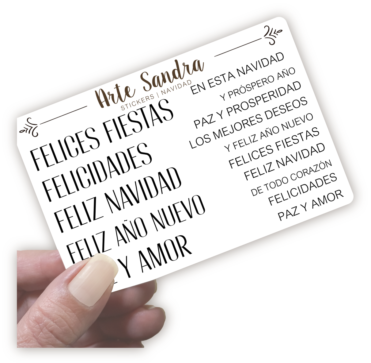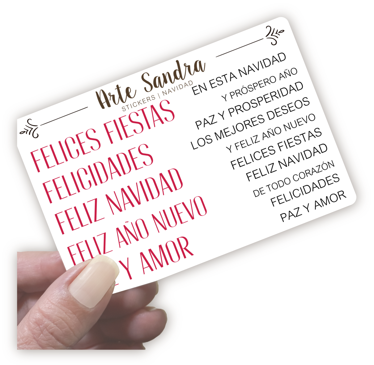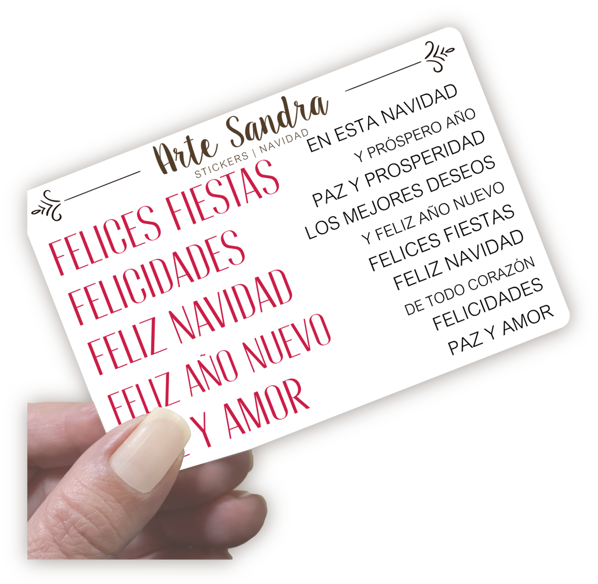Nuestra plancha de Stickers "Navidad" de diseño exclusivo de ArteSandra es el toque perfecto para darle un espíritu festivo y personalizado a tus tarjetas, regalos, journals y proyectos de scrapbooking.