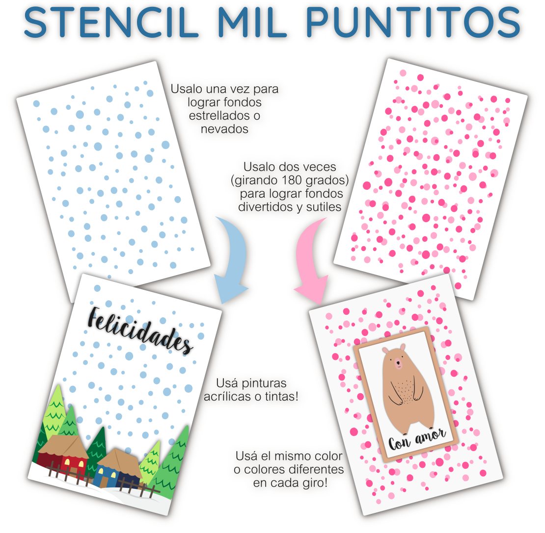 ¡Multiplicá la magia de los puntos con el versátil esténcil "Mil Puntitos" de ArteSandra! ¡Usalo de una o dos maneras para crear fondos únicos y dejá volar tu imaginación con sus infinitas posibilidades! ✨❄️🌸