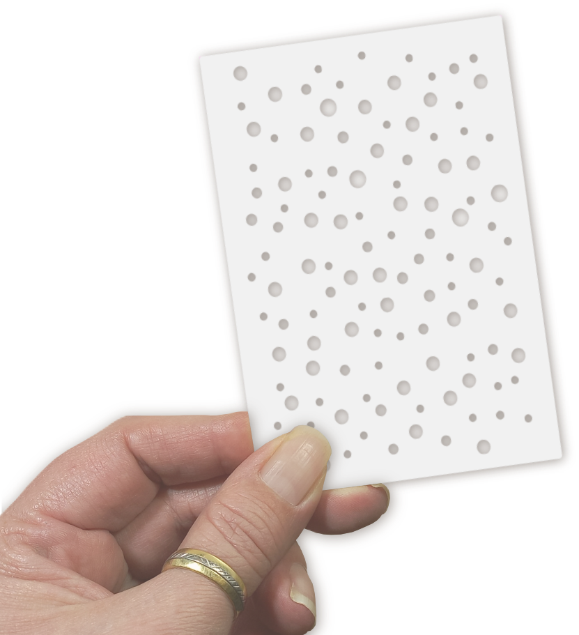 - ¡Doble efecto en un solo sténcil! Un diseño que te da un fondo de puntitos sutil y uno más denso con solo girarlo.