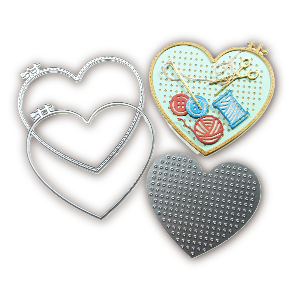 ¡Creá con amor y originalidad! Con este set de troqueles, cortá piezas en papel, cartulina y goma eva para armar un adorable bastidor de bordado en forma de corazón.