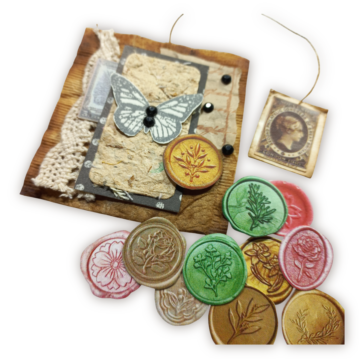 La versatilidad de los Troquelados Sellos de Lacre Vol 1 te va a permitir utilizarlos de incontables maneras. Son perfectos para agregar capas y detalles a tus collages, darle un toque final elegante a las páginas de tus journals, simular el cierre de pequeños sobres decorativos, o incluso como un elemento distintivo en invitaciones y etiquetas. 📚✉️✂️ Su diseño plano los hace fáciles de integrar sin agregar volumen excesivo.
