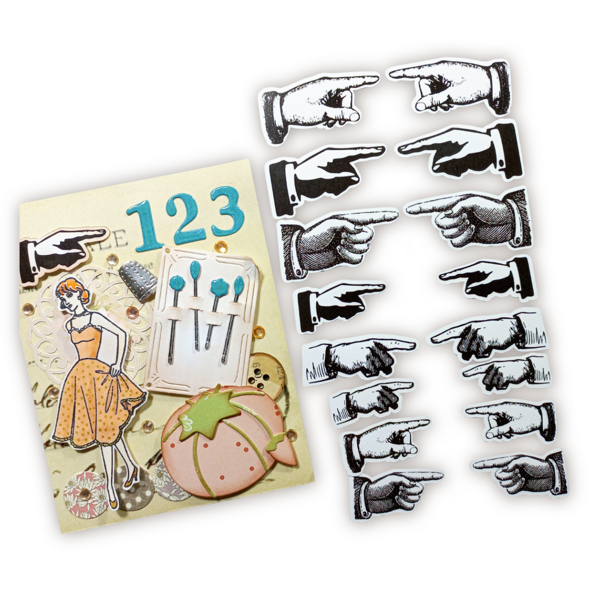 Capturá la atención y agregale un toque de ingenio a tus proyectos con nuestros Troquelados Manitos. Este original set te ofrece 16 die-cuts, recortados en cartulina de 120grs, garantizando una calidad impecable con ilustraciones vintage de manos señalando, ¡perfectas para destacar lo que más te importa en tus creaciones! Son el detalle ideal para sumar interés visual y personalidad a tus journals, collages y layouts. 👈👉