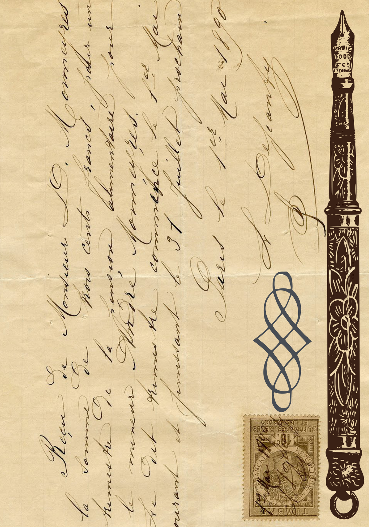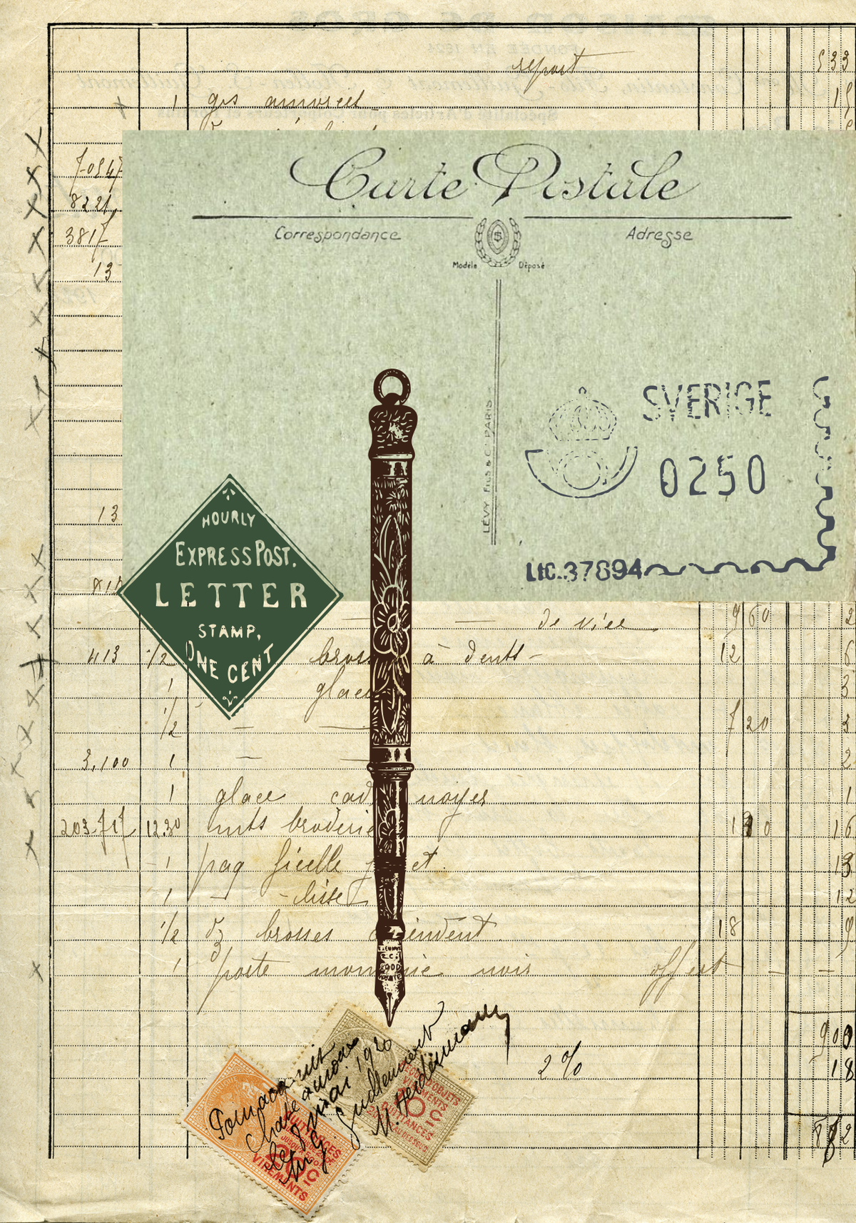 • Elementos icónicos: Identificarás elementos clásicos de la época, como plumas estilográficas, sellos postales de diferentes países, caligrafía elegante y motivos naturales como mariposas y hojas.