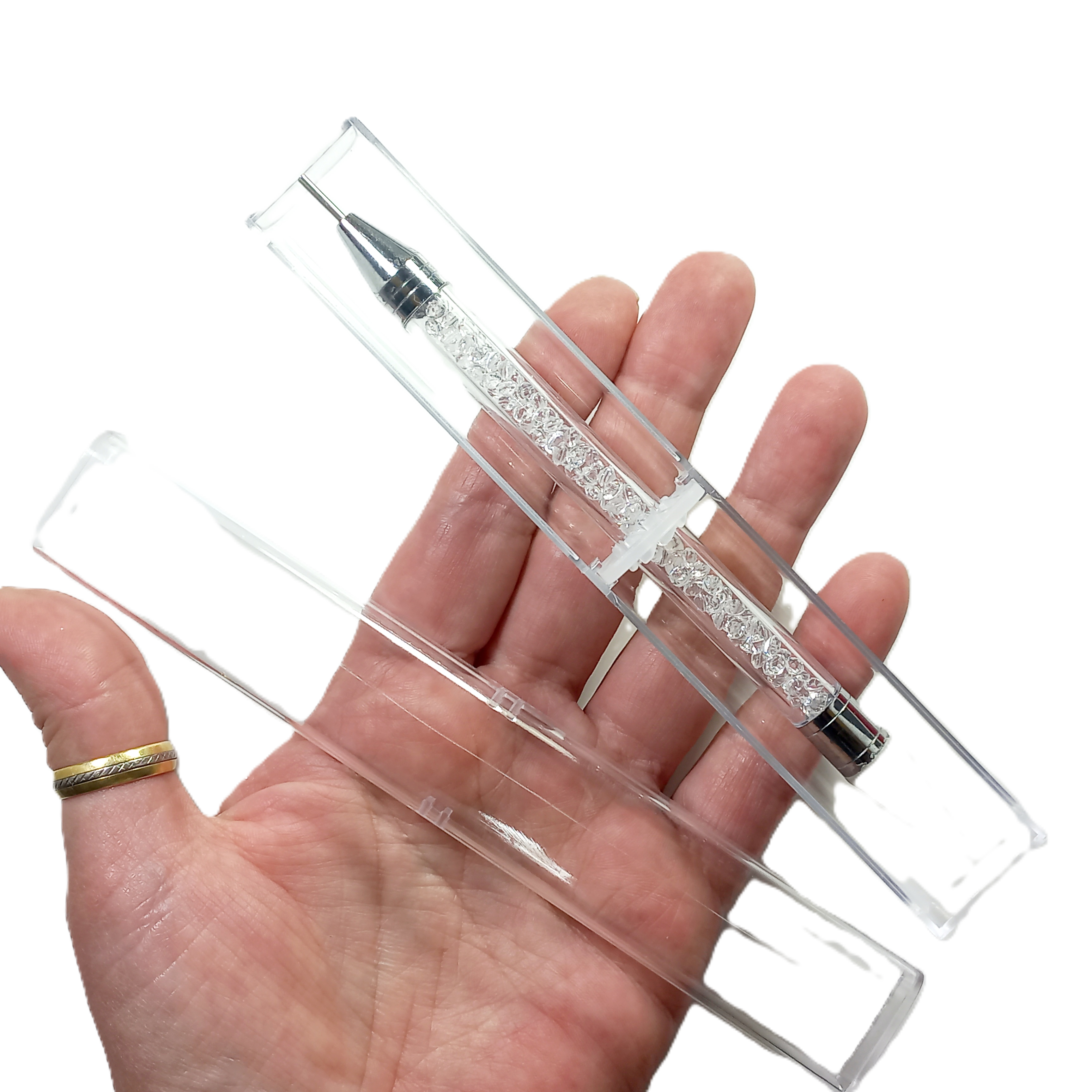 Con su práctico diseño tipo lapicera, que entra perfectamente en cualquier cartuchera, este LevantaStrass es tu aliado ideal. Cuenta con dos extremos: