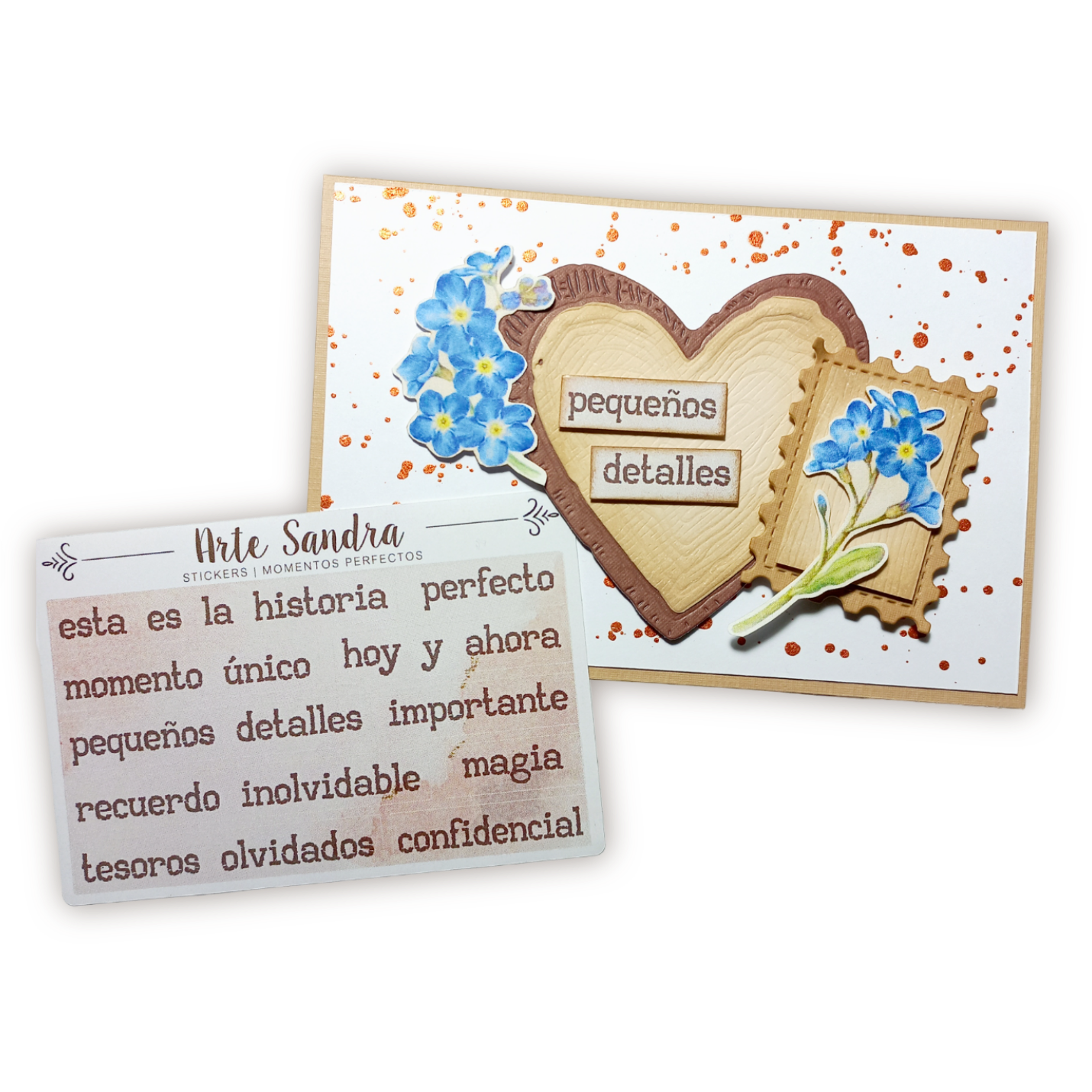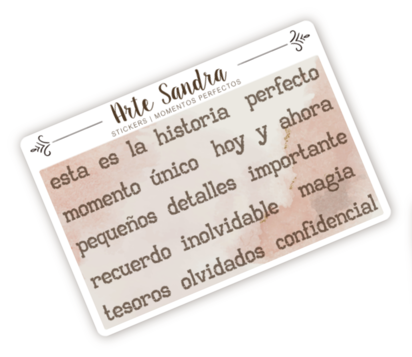 Nuestra plancha de 10 Stickers "Momentos Perfectos" de diseño exclusivo de ArteSandra es el complemento ideal para destacar y celebrar esas vivencias en tus journals, álbumes de scrapbooking y tarjetas especiales.