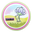 - Diseño: Círculo con siluetas de cielo (nubes), colina ondulada y pasto